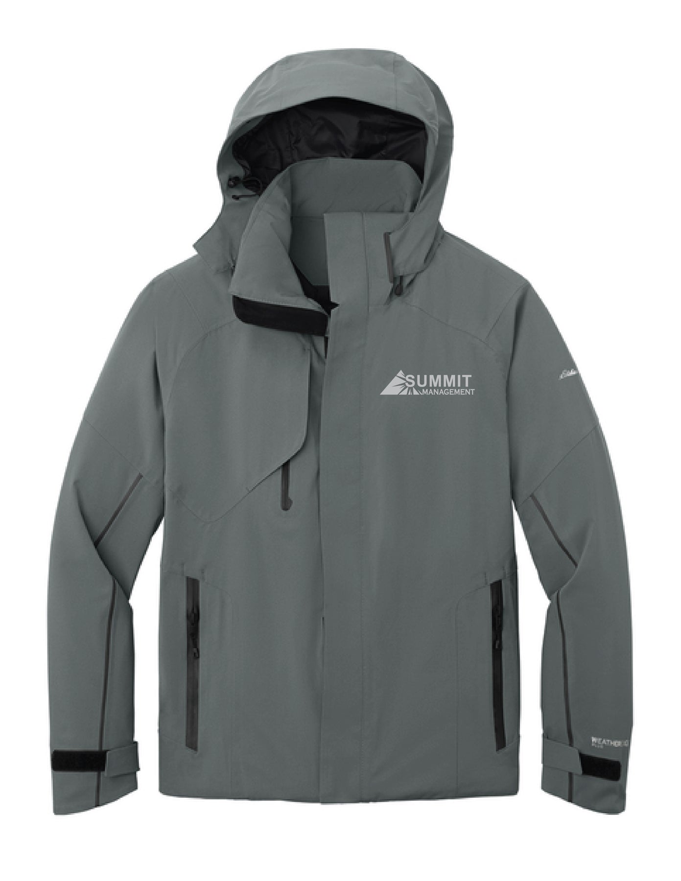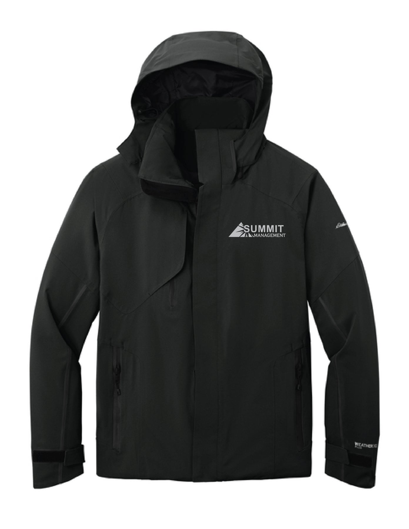 - Contrast heat transfer Eddie Bauer and WeatherEdge Plus logos on left sleeve
