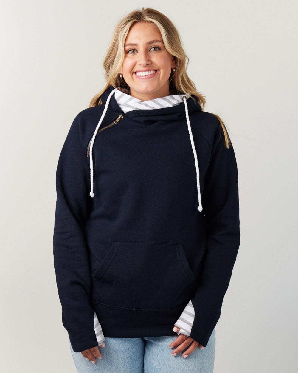 STYLE# EZ383 LADIES STRIPE DOUBLE HOOD PULLOVER