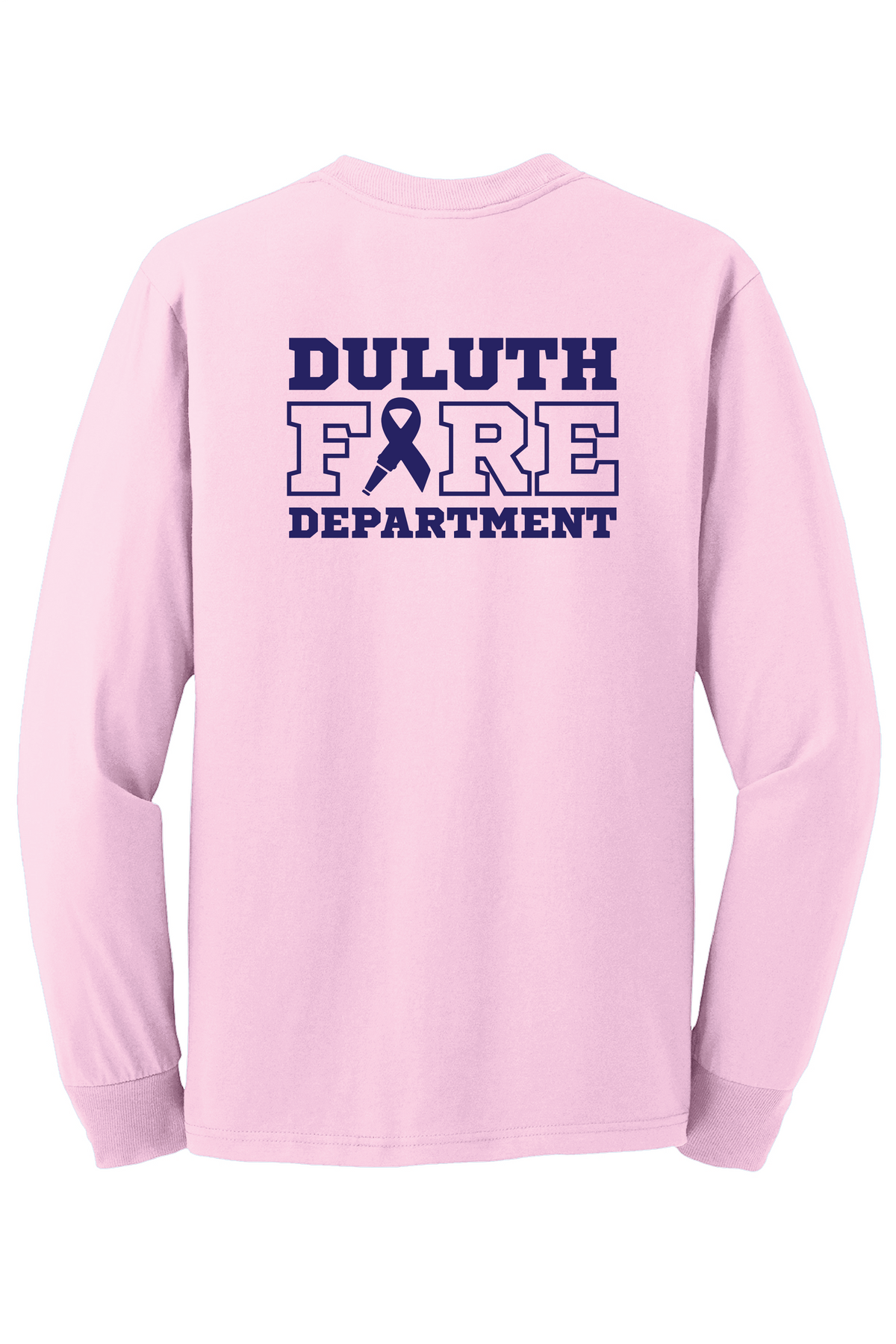 Screen Printed Front Left Crest DFD Logo in Navy, Full Back DFD Breast Cancer Awareness Logo in Navy