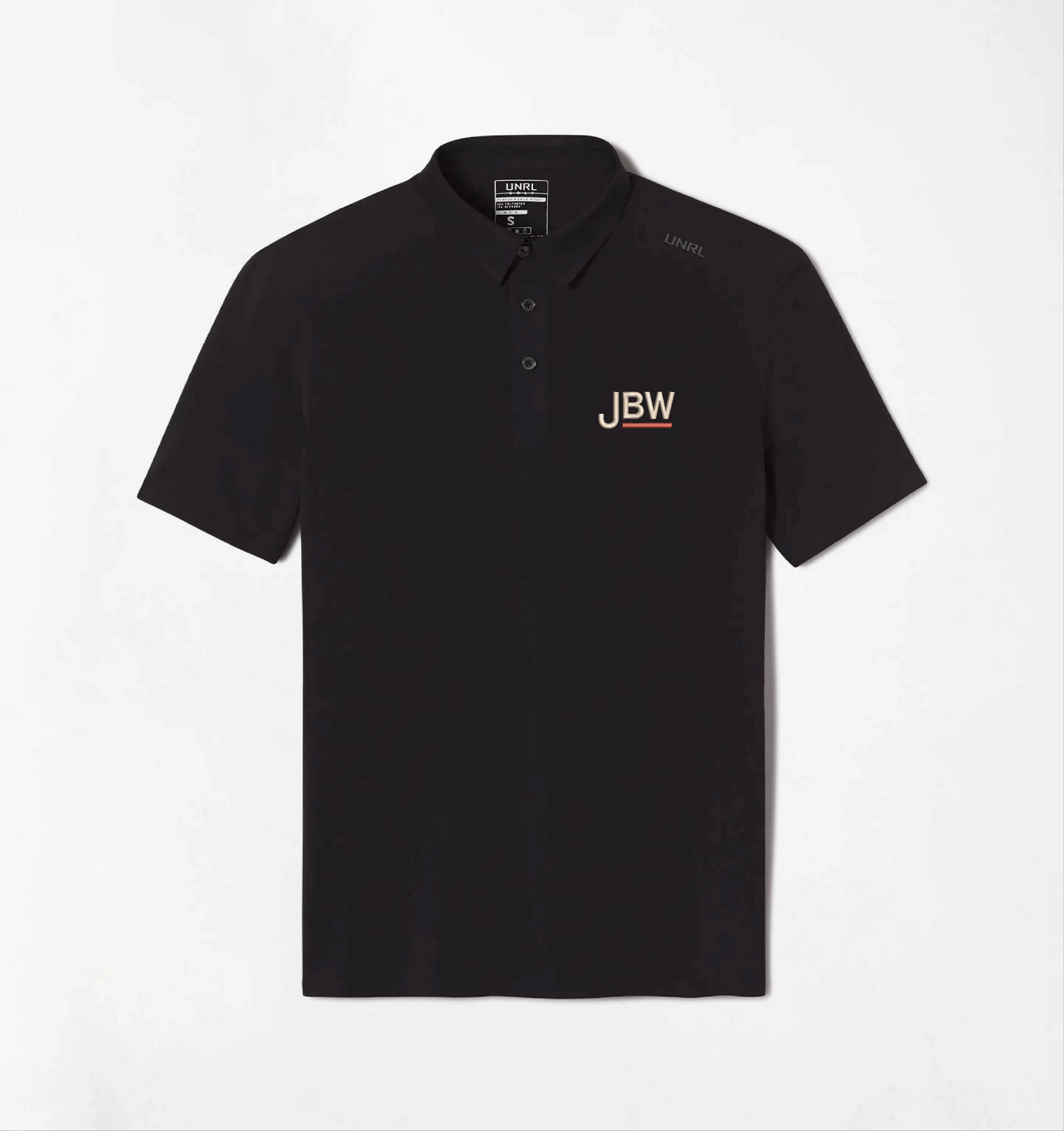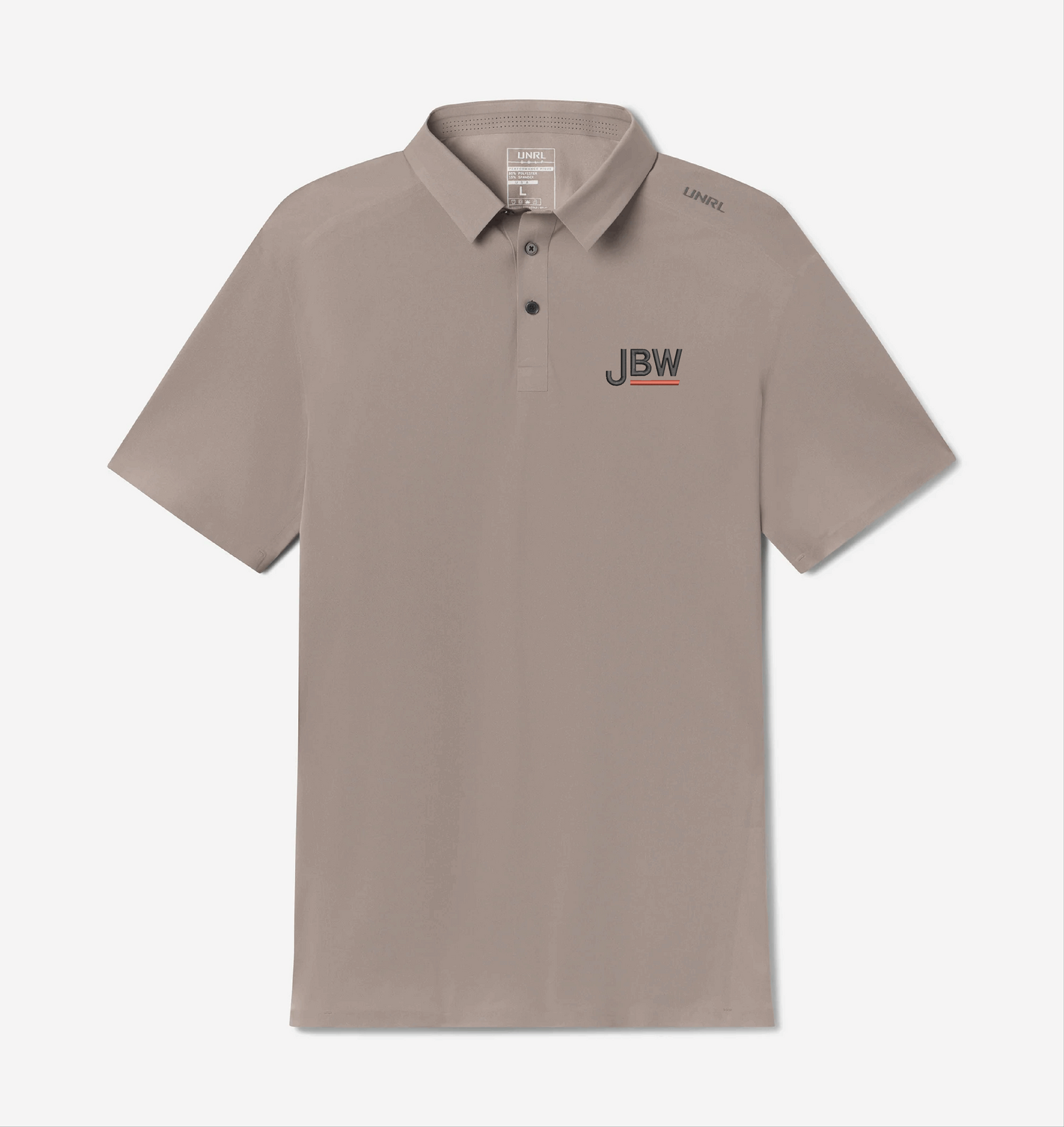 Embroidered Front Left Crest JBW Short Logo - Dark Color on Taupe. JBW Short Logo - Light Color on Matte Black and Gun Metal.